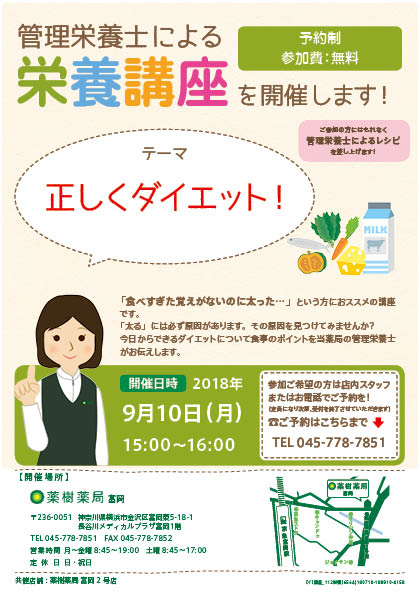 正しくダイエット!のテーマで講座を実施しました。 30~80代の幅広い世代の方が計5名参加いただきました。